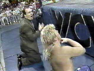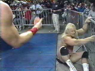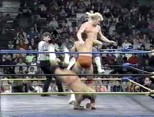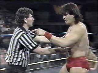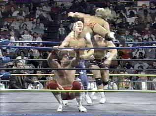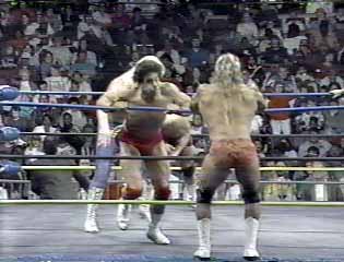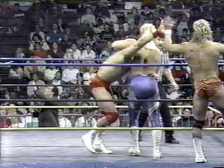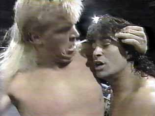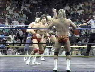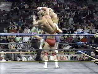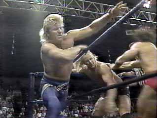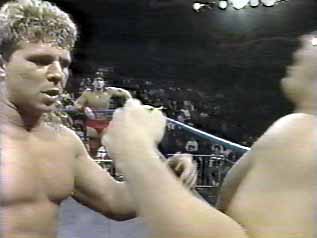 Meltzer rates this match two and three quarter stars (Add an extra star!). Meltzer also observes "My gut feeling is that Zenk is being buried..." (11/11/91). In other news, Pillman is light heavyweight champion but is getting no push whatsoever. He is doing some matches with Studd but can't pull a good match out of him. " Austin pinned Dustin Rhodes which is Dustin's first job in nearly one year" i.e. the first job since he came to WCW!!! (WON 11/05/91). Marcus Bagwell from GWF did a job for Mike Graham in a dark match - "told the office was quite disappointed with him." Road agent Magnum T.A. "suffered a stress fracture of his bad leg and will be off the road for a few weeks" (11/11/91).