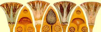 The lotus lily is an exquisite flower that grows on the Nile. It opens each morning towards the light and so became associated with the sun god Re, and symbolized re-birth.