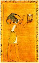 Thoth bore the head of the ibis - a water bird with a long beak. He was patron god of scribes and writing and was measurer of time.