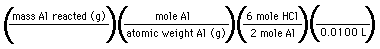 | 2 Al | + | 6 HCl | ---> | 2 AlCl3 | + | 3 H2 |