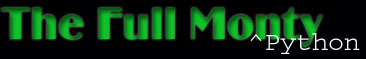 Frog presents.... Welcome Pythonites to the Full Monty ^Python! Now, we know that there's a lot of Python-related stuff out there, and that's why we're here, to sort through all the stuff and tell you what's hot and what's not! Now, we are still getting our bearings here, so please bear with us, because you never know...we may have a comfy chair hidden in the back!!! |