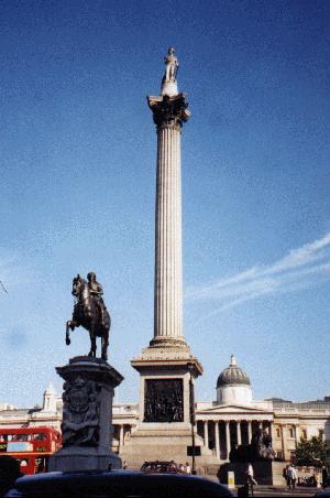 Trafalgar Square in London, England.  We careful to look first