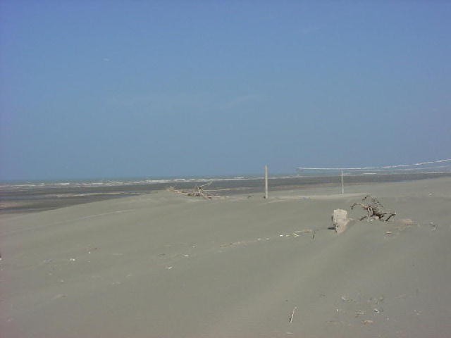 Mud flats, drift wood, note the forlorn volleyball net, a sad reminder of happier days long past.