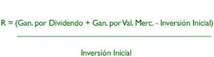 de un año = X(Gan. por Dividendo + Gan. por Valoración
