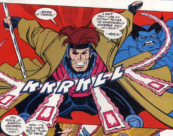Gambit Holding Staff, Throwing Cards Gambit Looking For Beast Gambit Winking Gambit's Eye