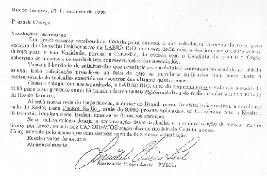 O imoral panfleto que está sendo enviado pelo ainda diretor aos associados.