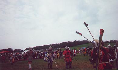Duke Anton Tremayne and Balynar Thorvaldsson walking back to resurection point during a battle.
