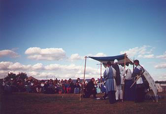 Wolfric recieving an award for helping out during the land grab.