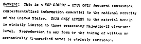 When the film was developed, it contained duplicate sets of eight pages of documents which were classified Top Secret/MAJIC. The title page identified it as "Briefing Document: Operation Majestic 12, Prepared for President-elect Dwight D. Eisenhower: (Eyes Only)", and was dated 18 November, 1952.