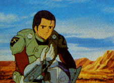 Scott Bernard, Ace Veritech pilot and Cyclone Rider, holds holographic locket that his deceased fiancee gave him.