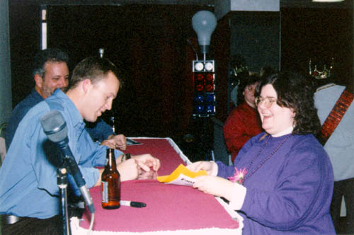 Now it's Sandy's turn. No doubt Mike wonders, "Does this line have an end?"