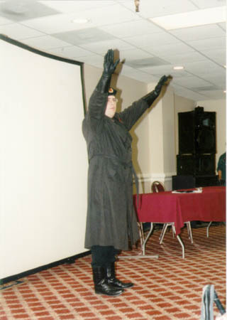 NOWFF Security Chief, The Exopope Zontar, brings the room to order with his commanding presence. It is wise not to mess with evil genius!