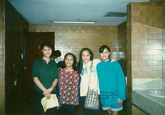 I guess you know already where this is taken... Robinson's Galleria. Joanne was taking the picture.... on the picture is JP...the future beauty queen, mylene, pia and me, of course! This is a funny picture because anyone who have seen this know were it is taken. =) (Maybe the guys don't!) |