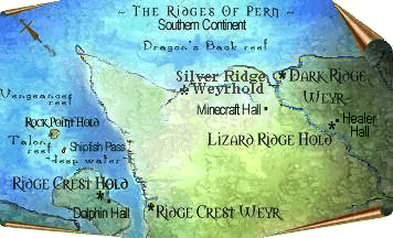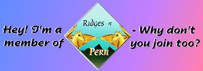 The Ridges of Pern is a Play-by-E-mail Role Playing Game I'm in that is based on Anne McCaffrey's Pern. It's really cool and if you like Pern, I highly recommend joining. I was on the Board for six months and I have uh... 16 personas. I suppose you would like to know some more about it, huh? Well, read on!