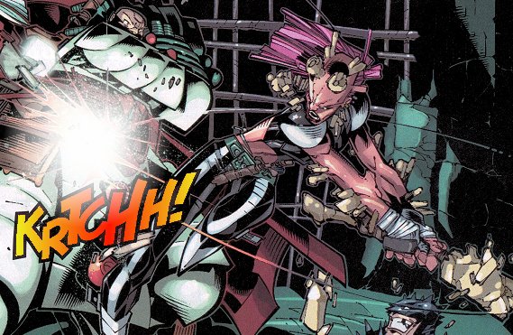 X-Men: Age of Apocalypse #2 (5/05) - In this alternate reality, we see Marrow as the jaded leader of the underground Morlocks. The X-Men show up to persuade the mutants to live above the surface, that society is changing and that they no longer need to be afraid. Marrow will not hear of it, taking no time to initiate an attack on the Silver Samurai. She is easily dispatched. Though the X-Men are victorious in the ensuing fight, there are casualties on both sides.