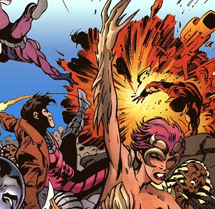 X-Men #97 (2/00) - Marrow and her other five compatriots continue to fight the Skrulls above the Egyptian sands, while below the Twelve escape and try to fight off both Apocalypse and the Living Monolith. Marrow's group is able to overcome their enemies once the Skrull start to rebel against their own leaders amidst the battle. Below, Cyclops intervenes just as Apocalypse begins to merge with X-Man, and as a result Scott and Apocalypse are fused into one body.