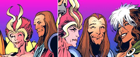 X-Men #98 (3/00) - Apocalypse again warps reality in an attempt to further siphon the powers of the Twelve. In this reality, we are 100 years in the future and Professor X is dying. But enough about him...Marrow is married to Gambit and they are expecting triplet grandchildren! Rogue shows up unaged and Marrow gets jealous. Of course, Apocalypse's plan fails and the X-Men are returned to the right time in the end.