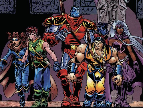 Left to Right: Shadowcat, Marrow, Colossus, Wolverine, Nightcrawler, Storm.