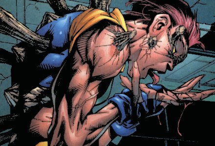 X-Men #72 (2/98) - Marrow and Wolverine fight hand-to-hand. Wolverine defeats her, but when he goes to help her up she stabs a huge bone through his throat, nearly killing him. Logan enters into a berserker rage and it is only Cannonball's intervention that stops him from killing her. Marrow retreats from the Mansion and goes to Callisto in the sewers, still intent on making humanity pay for their crimes against the Morlocks.