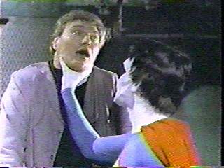 Meanwhile, Lex Luthor and his "assistant" Darla are wathing TV in their lair, which is an old prison. Something catches Lex's eye as he glances at the TV screen. "Hold the phone, that's Bizarro." Bizarro speaks to Judy Donatello saying "All me want is someone to love." Lex chuckles as he hears this and instantly an idea enters his head. An idea that could spell trouble for Superboy.