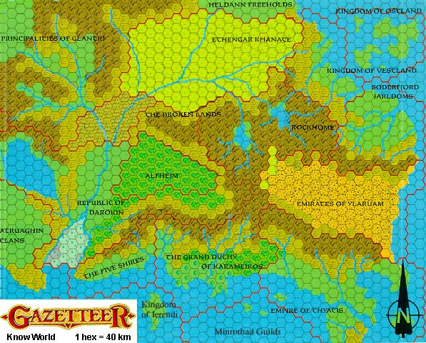 (Spécularium et Kelven) sont réèlement digne de porter le nom de cité et le reste du pays est un magnifique territoire riche de forêt et de monts. La population se divise en humains (de souche traladarienne et thyatienne), elfes (Calarii, réfugié d'Alpheim et Vyala), gnômes (Hauteforge) et quelques petites gens et nains. Hélas aussi on trouve un nombre grand de gobelins, orcs et de gnolls. De même, certains géants du froid ont été apperçu ainsi que de nombreux géants des collines, et il n'est guère besoin de rappeler que quelques dragons ont du élire domicile dans certaines régions ... mais peu de gens peuvent encore attester la véracité des rumeurs ...