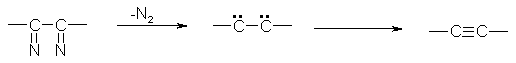 The starting point in this development was the observation made by T. Curtius that a -bis(diazo) compounds spontaneously lose N2 to give acetylenes.(9)