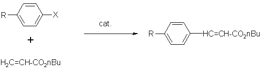 Palladium-carbene complexes are used as catalysts for the Heck olefination of aryl halides, according to the reaction below(14)