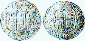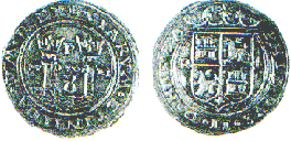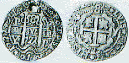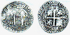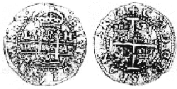 * 8 Reales, sin fecha (1569-1570), primera moneda acuñada en Lima, a nombre de Felipe II.