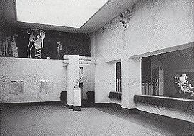 would have to transverse a room with roughcast walls decorated with Klimt's