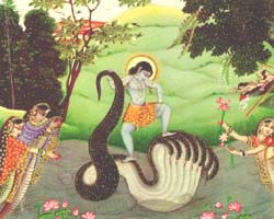 Wives of Kaliyanaga plead with Krshna to desist, as