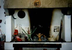 All'interno ci sono, scavate nei muri, numerose nicchie che servivano da armadio, una vicina al camino, ha mensole antiche. |