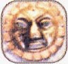 Mascherone scolpito sopra il camino.