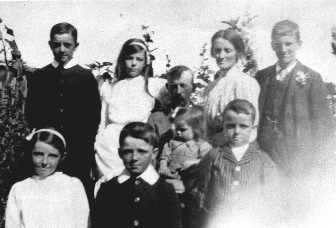 William and Bridget Bond photographed with their family at Deep Lead. Eileen is being nursed by her father. The other children from l-r are :- Bill, Trese, and Charlie (at the back) and Jessie, Alec and Frank (in front)