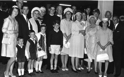 Family group photograph taken on the occasion of the author's First Profession of Vows as a Christian Brother in Feb.1968. At back from left:- Joan (wife of Gerald Bond), Jim Cannard, Gerald Bond, Win Brooke-Ward, Clare Cannard, Brian Bond (the author), Laurie Brooke-Ward, Maureen Dempsey, Noel Dempsey, Trese McFarlane, Catherine Bond, Laurence Bond, Jessie Parsons, Karlene Bond, Shirley Foley (Parsons), Jack McFarlane and Harold Parsons. In front from left:- David, Rodney and Debbie Bond and Stephen Dempsey.