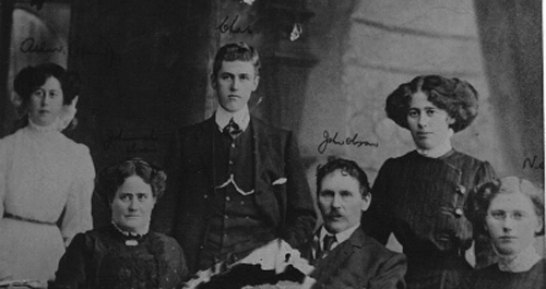 The Olson family. Standing (l-r) are Annie, Charles and Tilly. Nellie is seated front right with her parents Hannah (Benstead) and John Olson. (photo courtesy of Chris Upton)