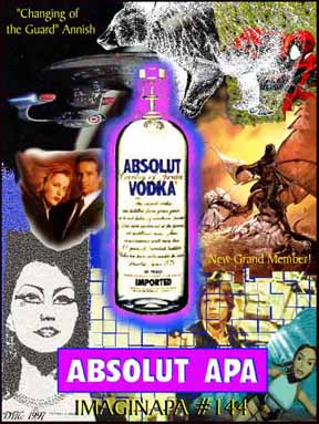 I OFTEN VOLUNTEER to do a cover or three of Imaginapa, a volunteer amateur press association. To figure out what an APA is, you'll have to go elsewhere. In any case, Imaginapa lets people submit front covers on a first-come, first-served basis, and I've taken some liberties with filling those slots.