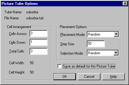And when you press the Options button on the Control palette for the Tube tool, you'll see the Picture Tube Options dialog box: