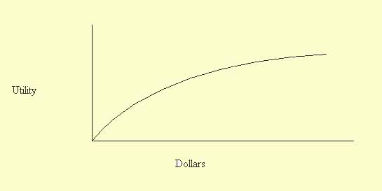 Beyond this obvious point, something needs to be said about what is meant by diminishing marginal utility. Utility, roughly, can be taken to be a measure of the strength of a person's preferences with respect to some outcome.5 Thus, if two different outcomes have the same utility for you, then, if you could not have both, you would be indifferent between them. If one outcome of a pair (when you could not have both) had greater utility for you then that is the one you would choose. If you had to give up something which itself had positive utility for you -- time or money, say -- to get one of the outcomes, you would give up more to obtain the one with the higher utility.