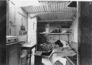 Exterior y detalles del interior de la barraca de Kiko. Carmen Hernández se preparaba para marchar a países del Tercer Mundo, con su congregación religiosa, pero al conocer la actividad de Kiko en las barracas descubrió su camino. Dejó su profesión de química, su familia más que acomodada, su vida religiosa en las seguridad y escogió la vida de los más pobres. Así pues, Kiko y Carmen, fueron llamados por el Señor a vivir su cristianismo en medio de los pobres, compartiendo existencialmente la vida de aquellos que, en su miseria, soportan las consecuencias del pecado de nuestra sociedad, y de este modo se encontraron requeridos por las mismas personas con las que convivían, para que les anunciasen el Evangelio de nuestro Señor Jesucristo. Algunos de aquellos comenzaban también a cambiar su forma de ser y podía reunirse el primer grupo en la barraca del pintor y luego también en la Iglesia, para celebrar la Eucaristía sin la presencia de los feligreses habituales, los cuales ni aceptaban a los "quinquis" ni entendían nada de lo que estaba pasando. Entre aquellas gentes se producía la comunión: comenzaba a entenderse, a quererse, a vivir el cristianismo. La palabra, que nacía en precariedad, comenzó a concretarse en una "catequesis", es decir un "kerigma" que en la medida en que descendía sobre aquellas gentes, realizaba el nacimiento de una nueva realidad: la "koinonía".