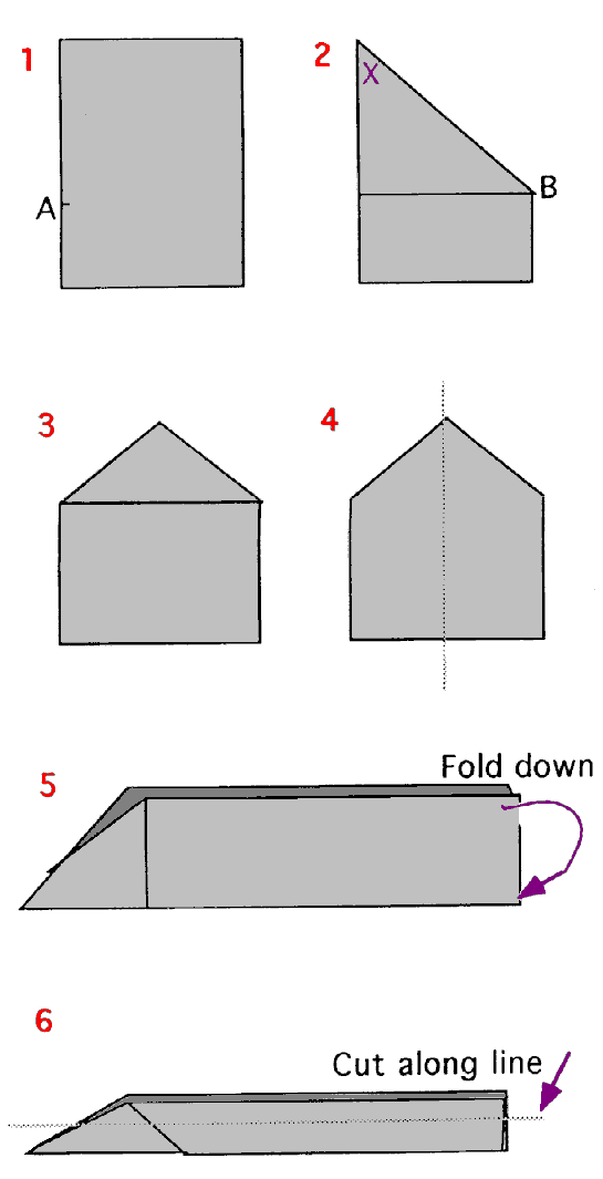 Give each person a rectangular piece of paper. Participants follow you as you demonstrate the following steps to make a "paper plane".