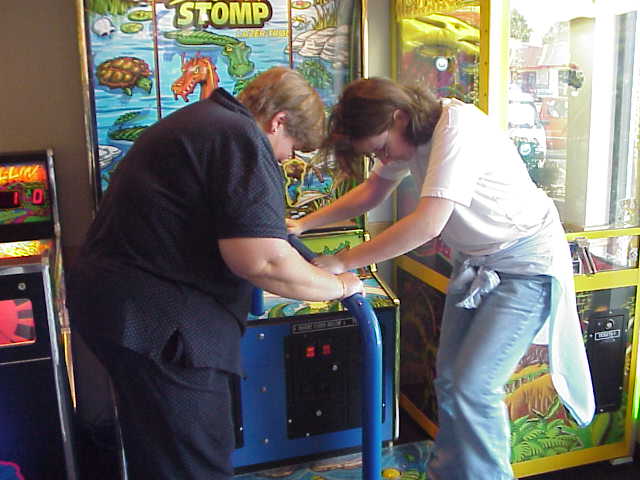 Emily Senefeld enjoy a healthy game of Swamp Stomp