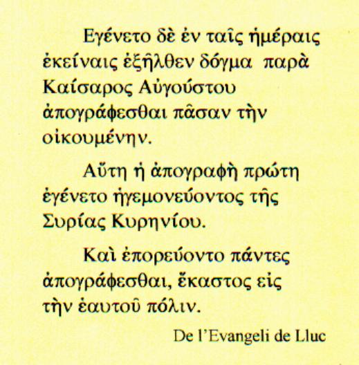Aquest cens va ser anterior al que es féu quan Quirini era governador de la Síria. Tothom anava a inscriure’s a la seva població d’origen. Lc 2, 1-3