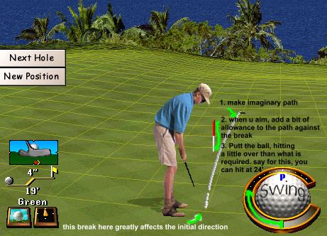 position of the aim should be 21" left of the hole but the swing