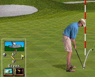 rolls onto the green. So check the green if it is uphill or downhill and