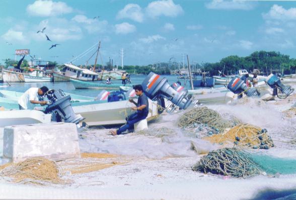 La Laguna de Términos, desde la costa isleña. A la derecha, el cotidiano quehacer vespertino de pescadores