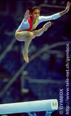 Photo: Andreea on beam at the 1999 Worlds in Tianjin, China.