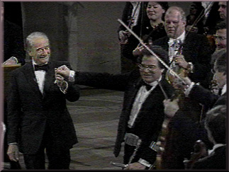 After a performance of the fiendishly difficult Sibelius Concerto - which Perlman executed with uncommon flair and perfection of technique - New York Times critic Howard Klein wrote, "...truly a sensational violinist...the tone was voluminous - warm, throbbing and dead in tune. The octave playing was only surpassed by the way Mr. Perlman whistled through the short section of the harmonics in the last movement...listening to him play produced joy on every level - technical, musical and above all, human.