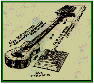 the strings of his "Teotihuacan Guitar" to be 763. meters in length.