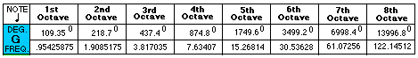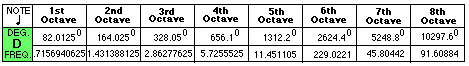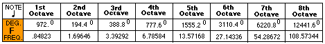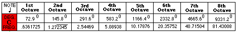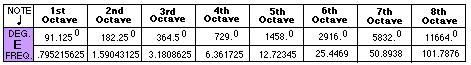 1st octave data: 91.125 degrees establishes the frequency of this tone.