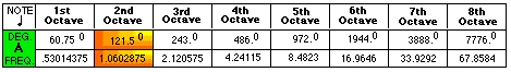 2 nd octave data: 121.5 degrees establishes the frequency of this octave.